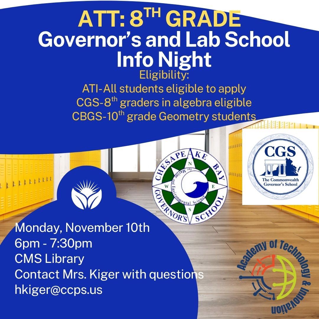 Attention 8th grade families: Please join us for an information night about Governor’s and Lab School programs that students are eligible to attend in high