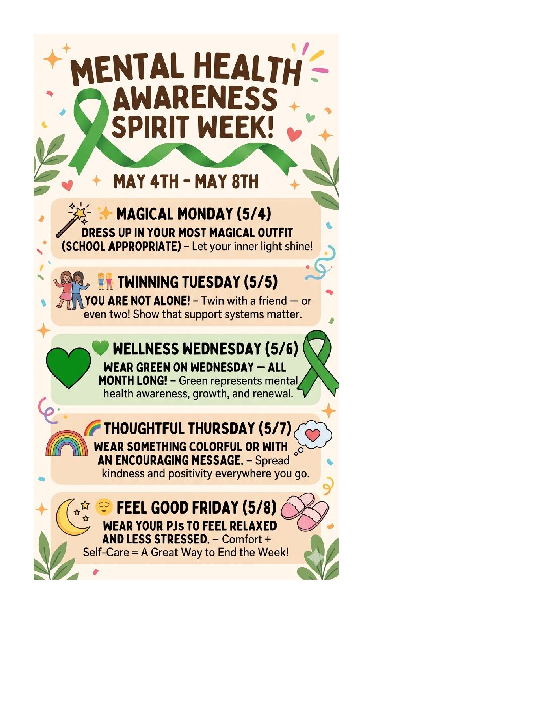 Mental Health Awareness Spirit Week: May 4th-May 8th